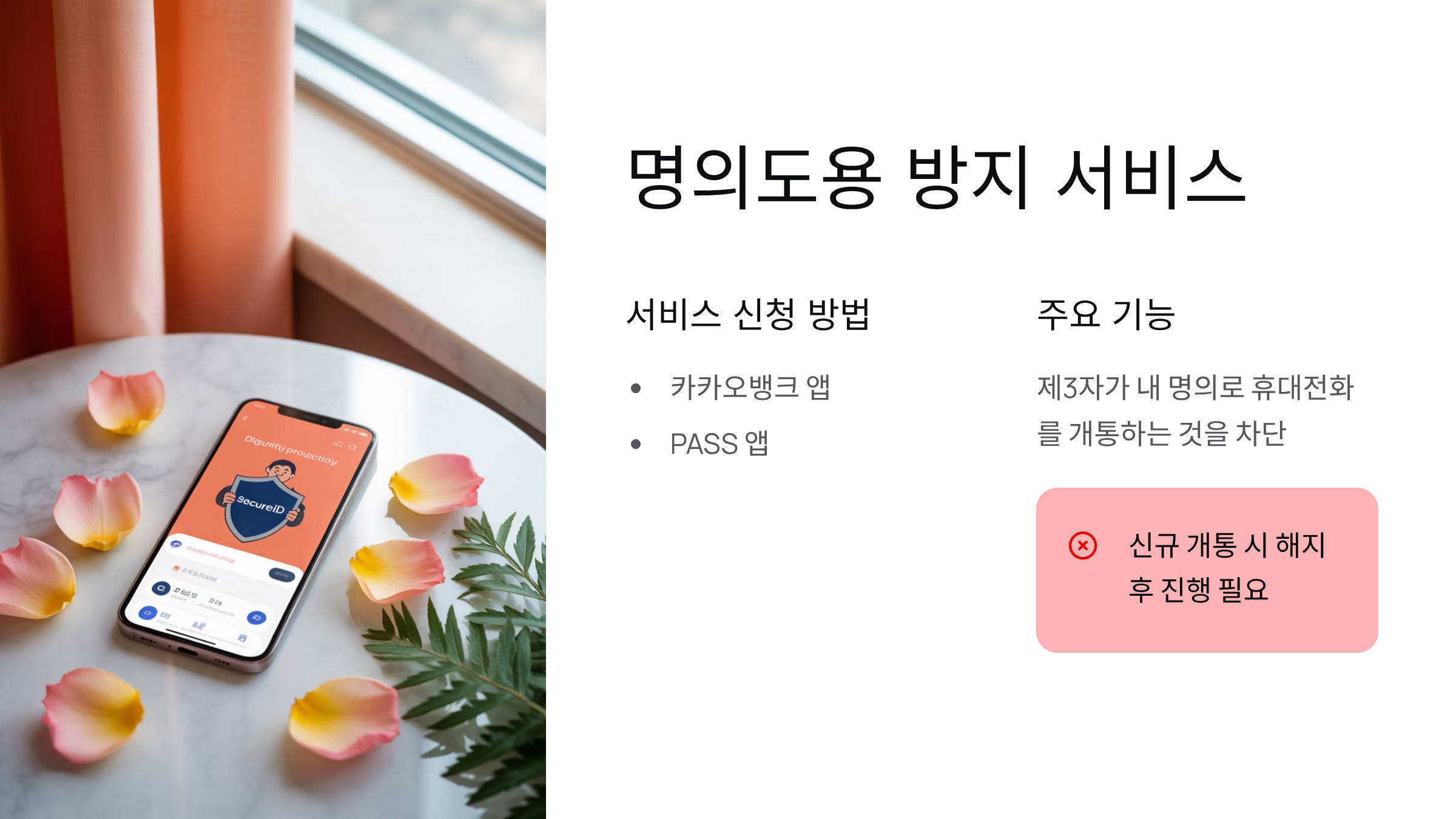- 이 서비스는 제3자가 내 명의로 휴대전화를 개통하는 것을 차단합니다.