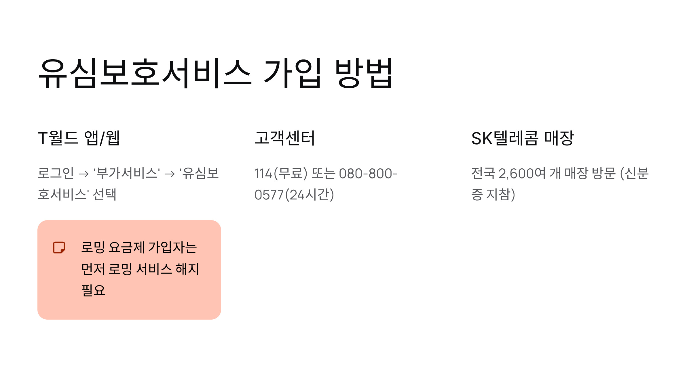 - SK텔레콤 고객센터(114, 무료) 또는 사이버 침해 전담센터(080-800-0577, 24시간 운영)에 전화해 상담원 안내에 따라 가입.