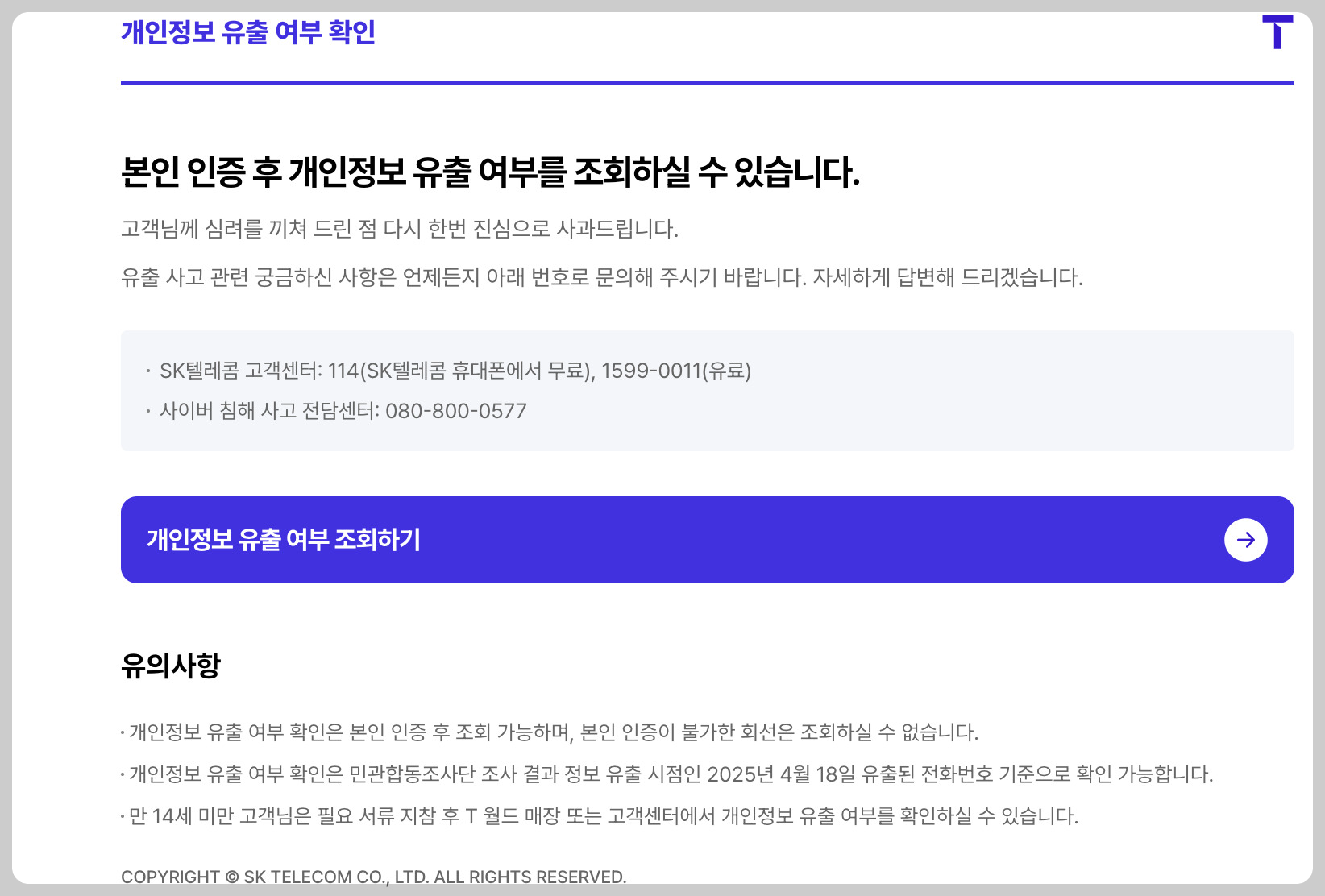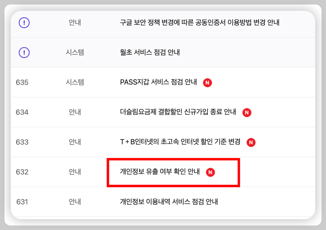 2. SK 개인정보 유출 여부 확인 방법