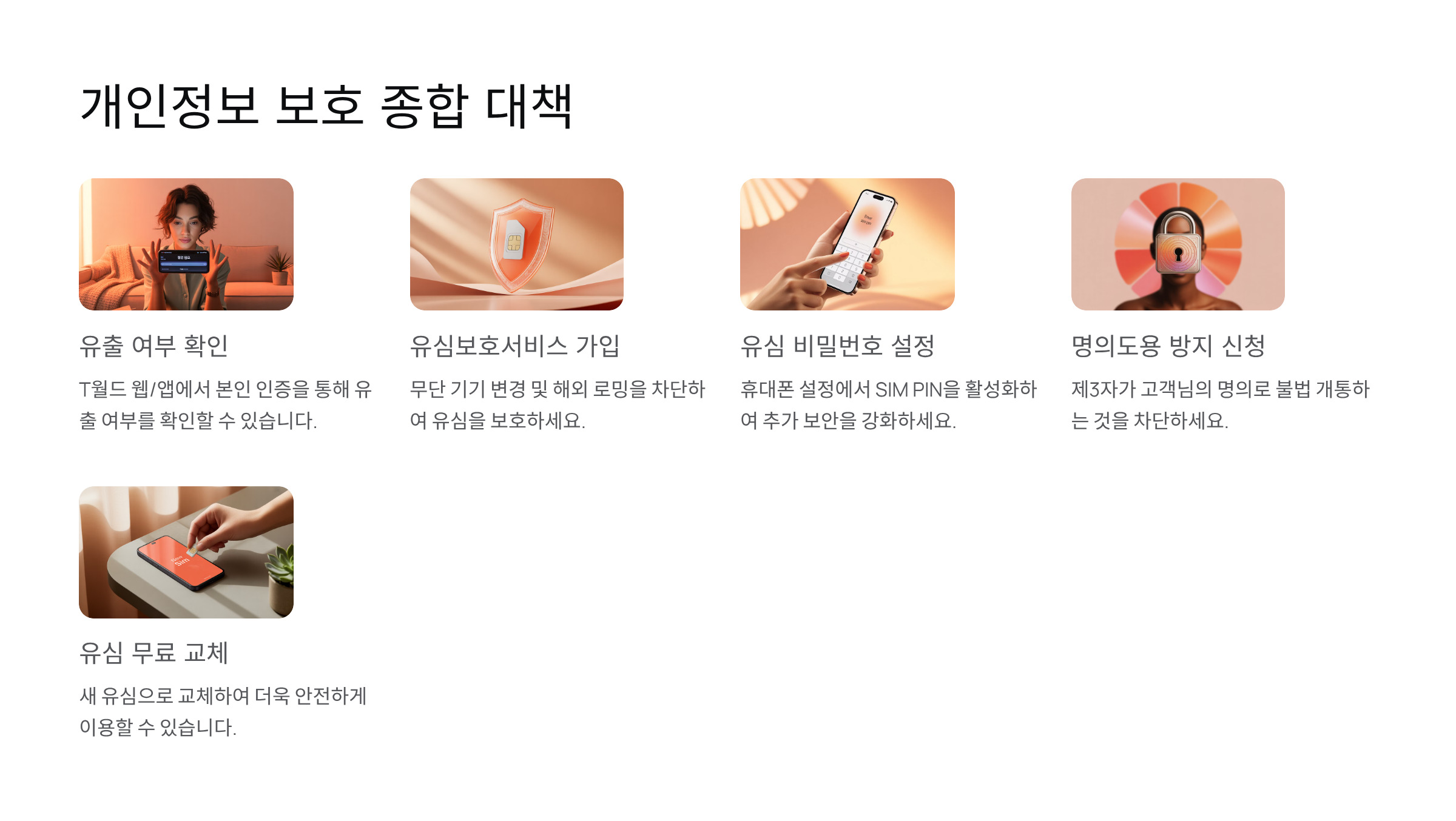 - 유심보호서비스 확대: 알뜰폰 고객 포함, 가입 절차 간소화.