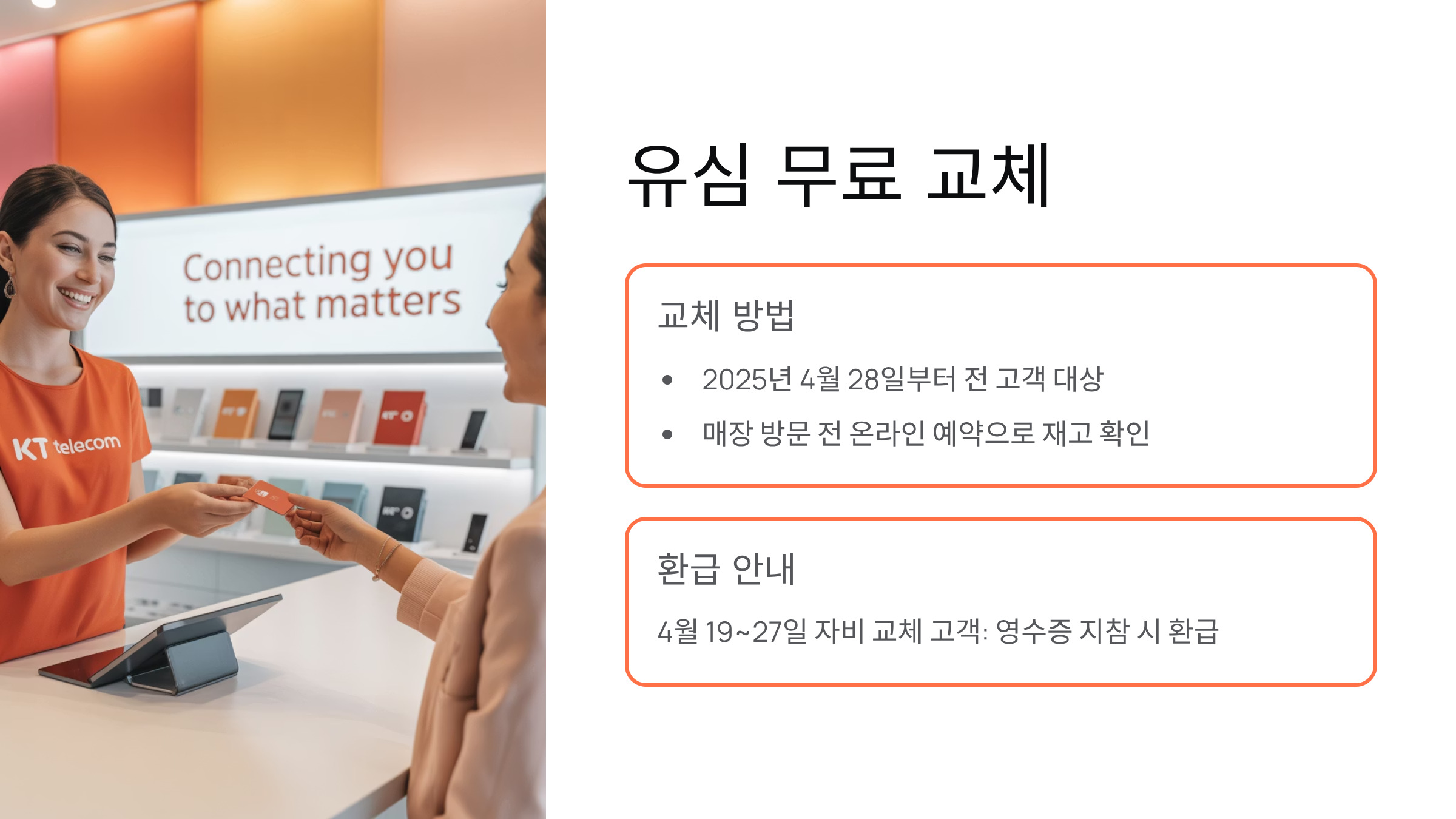 - 4월 19일~27일 사이 자비로 유심을 교체한 고객은 영수증을 지참해 매장에서 환급받을 수 있습니다.